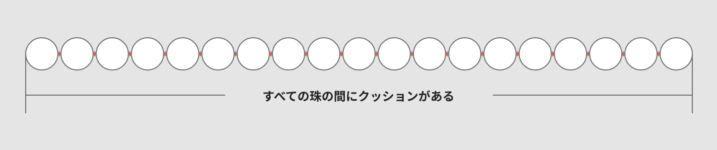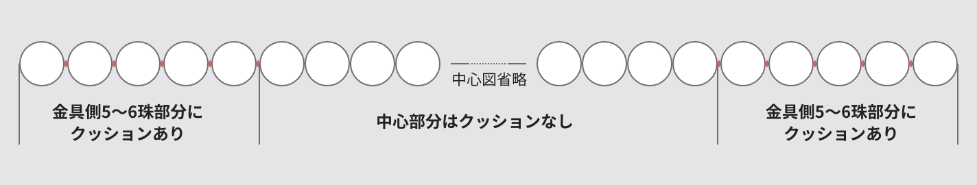 ただし、オールクッション加工には大きなメリットが一つあります。それは、クッションの分だけ全長が長くなるため、珠を追加することなく約2cmほど通常加工よりも長く仕上げる事が可能な点です。