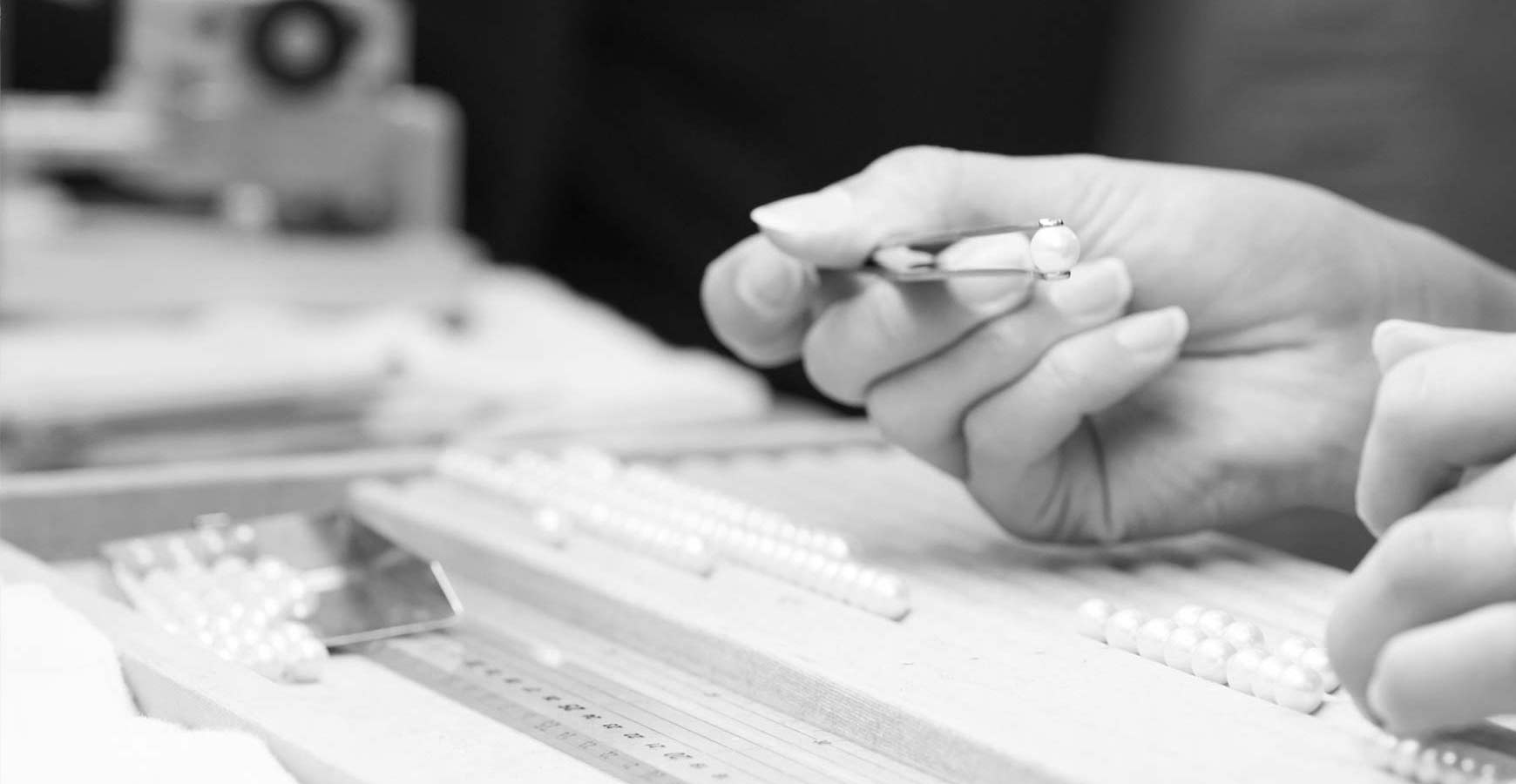 「珠と珠がこすれるとキズがつく」という事を耳にされた方もいらっしゃるかと思いますが、これは誤った情報の一つです。真珠の性質・硬度からも、真珠同士が隣り合うだけではキズは付きません。元々真珠は浜揚げ後の加工工程で、洗濯機のような回転する容器の中に何百・何千という数の珠を入れて洗浄を行います。一斉に篩にかけて大きさの選別もします。真珠が真珠同士のこすれあいによって傷がつくとすれば、この加工によりすべての真珠が価値を失う事になります。よって通常加工で真珠がキズつくことは考えられませんので、ご安心ください。