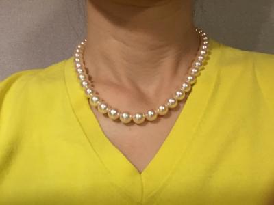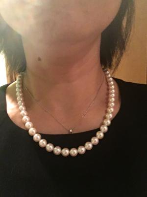 感激しました。とても素敵なネックレスを購入できたこと、嬉しく思っております。 お電話で伺っていた以上に素晴らしいツヤで、今まで持っていたネックレスよりも大きく豪華で喜んでおります。 包装も丁寧にしていただき、商品への思い入れの強さを感じました。