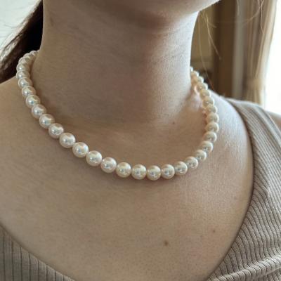 娘へのプレゼントに購入させて致しました。8から8.5ミリサイズの白いパールがとても美しく、娘も一生大事にします、と喜んでいました。 貝の留め具も洗練されていて素敵でした。 丁寧に説明してくださり、素晴らしい買い物が出来ました。ありがとうございました。