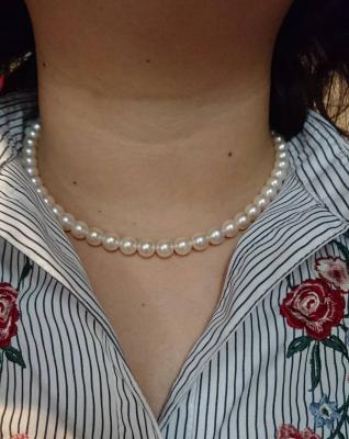 前回娘の結婚式の贈り物に こちらの 真珠のネックレスを選びました。娘も喜んでくれて 私も嬉しかったです! そのネックレスを見て本物のよさを知り私も欲しくなり 購入しました。 着いてから何度も 付けては楽しんでいます!