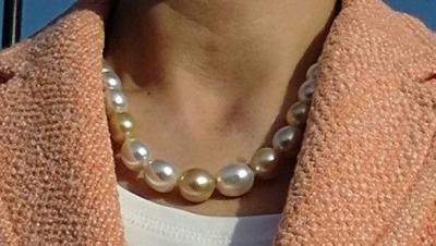マルチカラーのネックレスを購入しました。知り合いの宝飾店の方に50万円以上のお品を薦められたのですが、あまりに高価すぎ 。購入したネックレスは真珠の大きさも、色の配置も望んでいたとおり。満足です。
