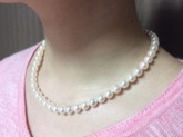 母から姉とお揃いで真珠のネックレスをプレゼントして貰いました。一目見て「凄くキレイ」と見とれてしまいました。品のある美しいピンクで光沢がありとても気に入りました。店長さんのお勧めでこの真珠に決めたそうです。