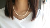 花珠真珠ネックレスの7.5から8ミリを購入しました。予想より大きな珠で、言葉で言い尽くせない美しさに驚いています。