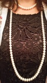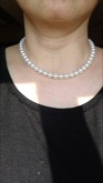 想像以上の綺麗な品物です! 黒ドレスにつけるので、一連パールだとお葬式みたいになりそうで余り珠プチジュエリーをジョイントバチカンペンダントにしてネックレスにつけてみました。 他の人と被らず良い感じです。 もちろん一連パールとしても綺麗で1珠抜きでもちょうど良い長さでした。
