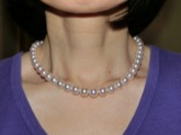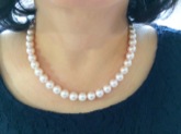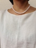 届いてから毎日見たり着けたりしています。今まではイミテーションしかもっていませんでした。 50代に入り、本物の真珠のネックレスが欲しくなり、HPからゼネラルさんを知りました。HPからお買い物もできるようでしたが、手にとって見たくて自由内覧会へ行きました。少し大きめを希望していたので、8-8.5mmと8.5-9mmで迷ってしまいましたが、年を重ねると大きい物が人気と聞き大きいほうに決めました。 また、たくさんの真珠の中から、予算と私の肌に合った物を選んで下さいました。 クラスプもたくさんの中から自分の好みの物(モダンなバラの形)が選べ、私だけのオリジナルな物になり大満足です。 届いたネックレスは、お店で見た時よりもずっと綺麗に光ってるように感じました。 これから大切に使いたいと思います。 ありがとうございました。