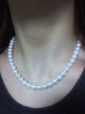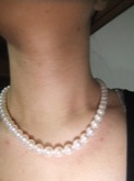そろそろイミテーションではなく本物の真珠のネックレスが欲しいなと思っていたところ、父からプレゼントしてもらいました。色々なサイトを見比べて吟味した上で購入してくれたようです。実際の商品は形も色もとてもきれいで、母の持っていた真珠と比べてみても輝きが違いました。また、鑑定書以外にも、お手入れ方法を書いた説明書やクロス等をつけてくださっていてとても親切なショップさんだと感じま した。ずっと大切にしていきたいと思います。ありがとうございました。
