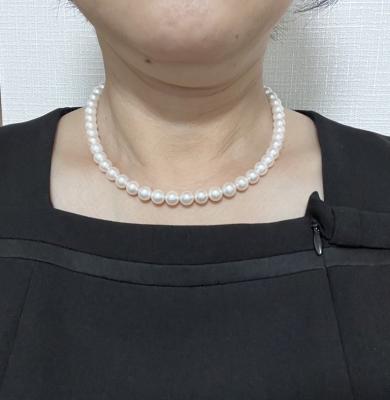 とても綺麗なネックレスが届きました。 病気で首が一般女性より太いから無料の調整で44センチにお願いしました。着用してみたらピッタリで大変満足してます。 そして真珠のテリの良さも傷の程度も想像以上に良い、留め金もすごく気に入って、本当にありがとうございました。