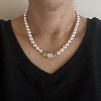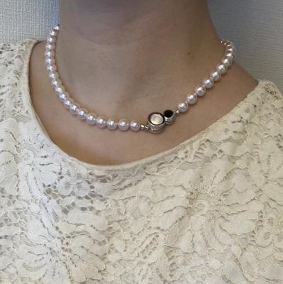 留め金の外し方、ご親切に教えて頂きましてありがとうございました。美しい輝きが上品で大変満足です。長すぎた分の珠もプチジュエリーに出来たことも嬉しさ倍増でした。ありがとうございました。