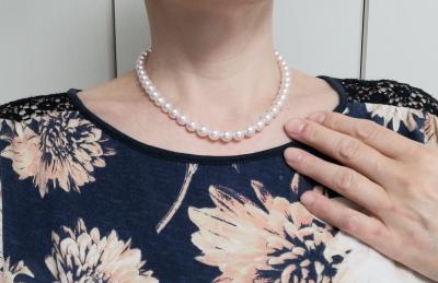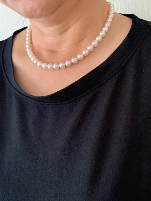 大粒の真珠のネックレス素敵です。2cm追加してちょうど良い仕上がりでした。