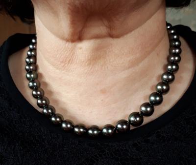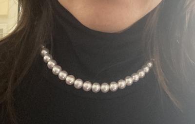 待ちにまった ネックレスが届きました ホワイト系ですがグリーンとピンクが とても美しく テリ が抜群です しばらく見とれていました 近じか出番はないので毎日眺めて います 「早く来い 出番よ!」って感じです 真珠ってこんなに美しいんだって 改めて思いました. 「素敵なパールネックレス 有難うございました」