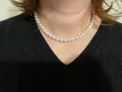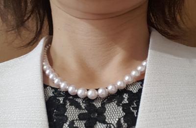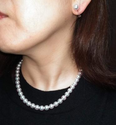 ネットショップでの購入は、到着するまでドキドキしましたが、開けてみてびっくり! テリの良さがとても美しく、着けるとパッと顔周りが明るくなります。ほんのりピンク色もとてもかわいい! 細かい傷はありましたが、着けてみると気になりません。 また、クラスプの種類をどうするか事前にメールで問い合わせさせていただき、丁寧に返信していただきました。ありがとうございました。 冠婚葬祭だけでなく、普段使いとしてもたくさん着けたいと思います。 本当にありがとうございました!