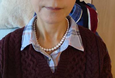 このお値段で無調光の真珠を購入することができて、感激しました。 ネットで高価なアクセサリーを購入することに抵抗はありましたが、届いた商品を見て安心しました。商品案内の写真と同じような商品でした。写真通りの美しいテリです。説明文通り、確かにエクボはありますが、着用すれば気にならない程度です。 長めのサイズを希望していましたが、オールクッションで追加料金なしで長くすることが出来たのも嬉しかったです。 とても良い商品を購入することができました。ありがとうございました。