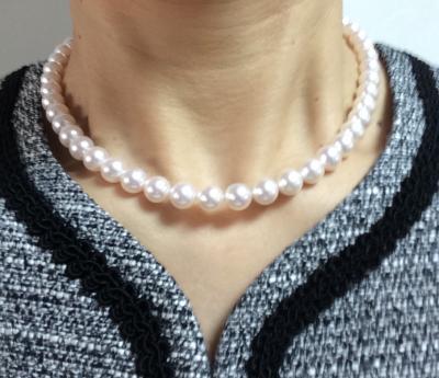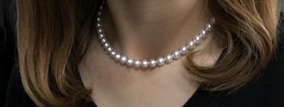 50歳の記念と、子どもたちが揃って卒業の年を迎えたので、小さくても本物のパールが欲しいと思い、探していました。 こちらのサイトでの丁寧な説明を見て、候補になるものをみつけましたが、予算もあり、迷っているうちに使う日が近づいてしまい、思い切って連絡しました。電話で話すとより高いものを勧められるのでは?と不安でしたが、予算を聞いてくださり、その中で一番テリがよいものを丁寧にご提案してくださいました。予算よりお安いものでもテリは十分だというお話さえあり、安心しました。 すぐに使いたくて、ショールームまで取りに伺いましたが、その時も気持ちのよい対応をしてくださいました。 手持ちのネックレスが少しだけ長くてきれいなラインにならず、ブラウスに隠れたりしていたので、39cmにしました。実際に着けてみると、ぴったりで美しいテリがきれいに見えて、大満足でした。今後、大切な日に身につけるのが楽しみです。 パールについての知識もなく、予算も少ない私に本当に丁寧に対応してくださり、ありがとうございました。