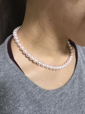 長男の入園式で付けて行くために、ネットで探した結果、ゼネラル真珠さんの商品を見つけました!予算の範囲で最上のものを欲しくて様々なお店屋さんを比べてこの商品に決めました。届いた時は、ピンク色のなんとも言えない輝きに興奮しました。ちょっとエクボがありますが、テリの強さでカバーしてるのでそこはガマンですね。 次は 実店舗でじっくり見て購入したいです